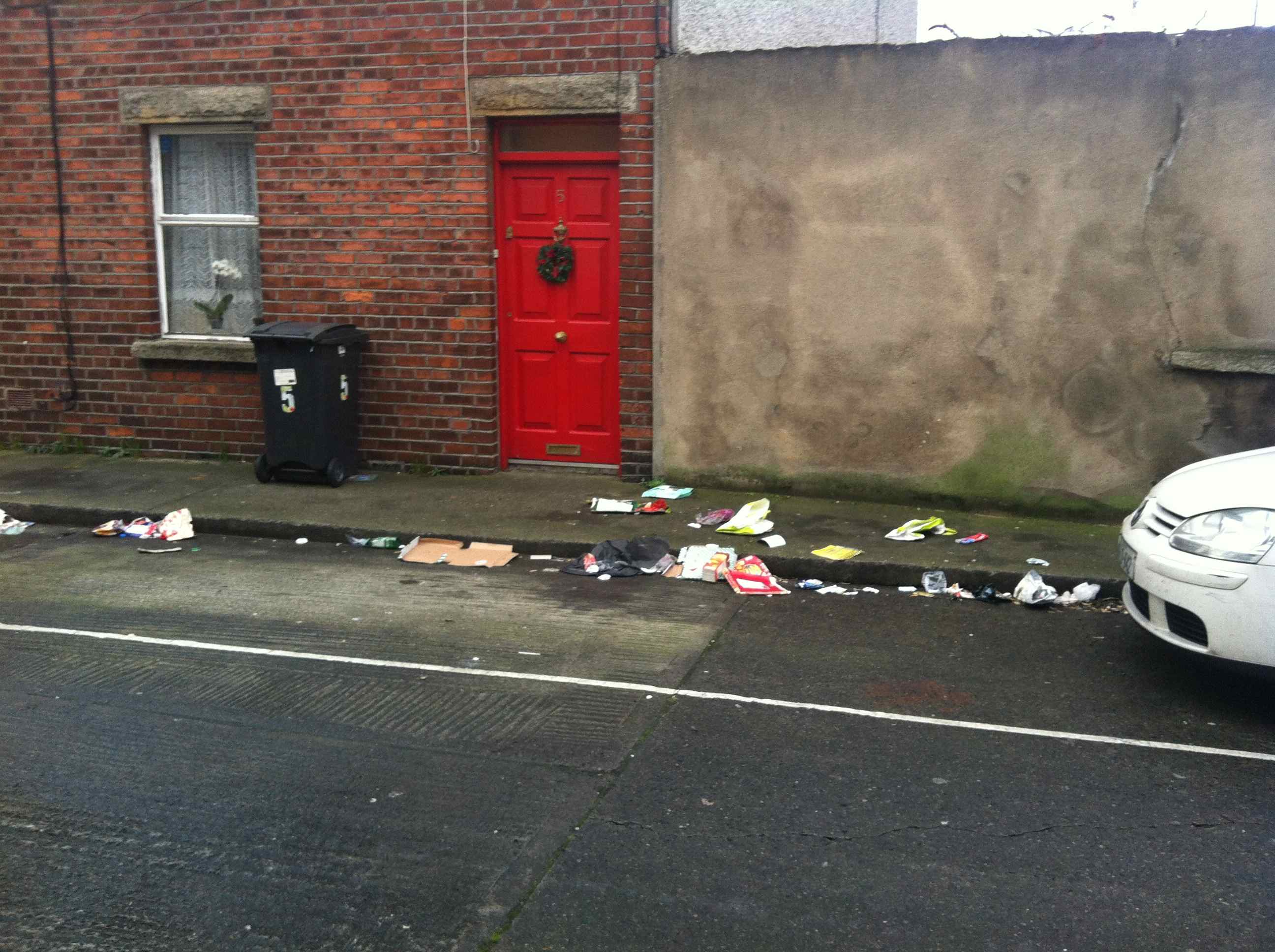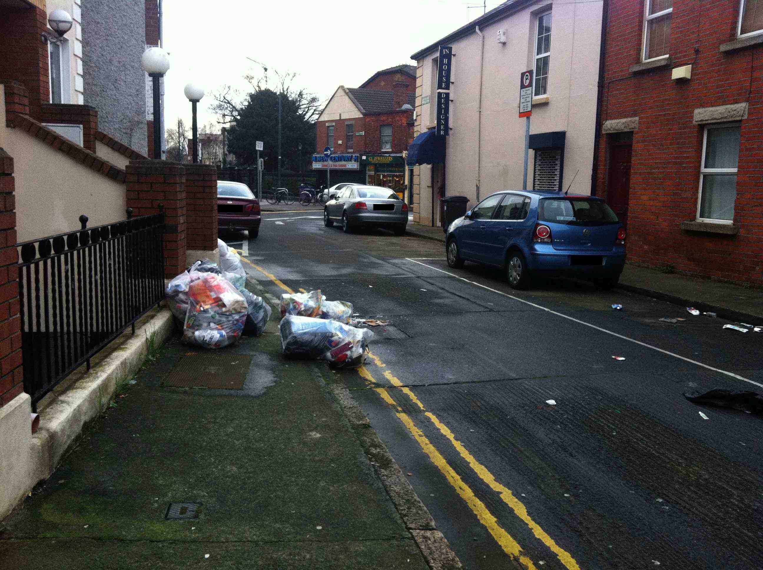 All the bags had Greyhound tags on them, but as Greyhound didn’t collect household rubbish between the 17th of December and the 5th of january they were left there. The exact address is Prospect Ave, just off Harts Corner. I took the photos on the 4th of January.
