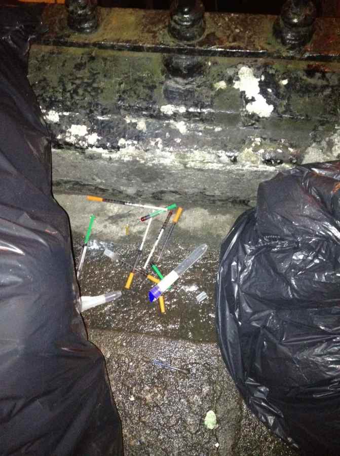 Nasty. Found by a woman walking her kids -> Syringes on Berkeley st, Jan 24 2013