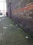 With thx to AS. “Greyhound have taken the tagged bag away on this morning’s collection but have left the spillage discarded on the pavement where it lay around the bag.The second photo is a closer shot of the smaller bags of dumped household waste.”