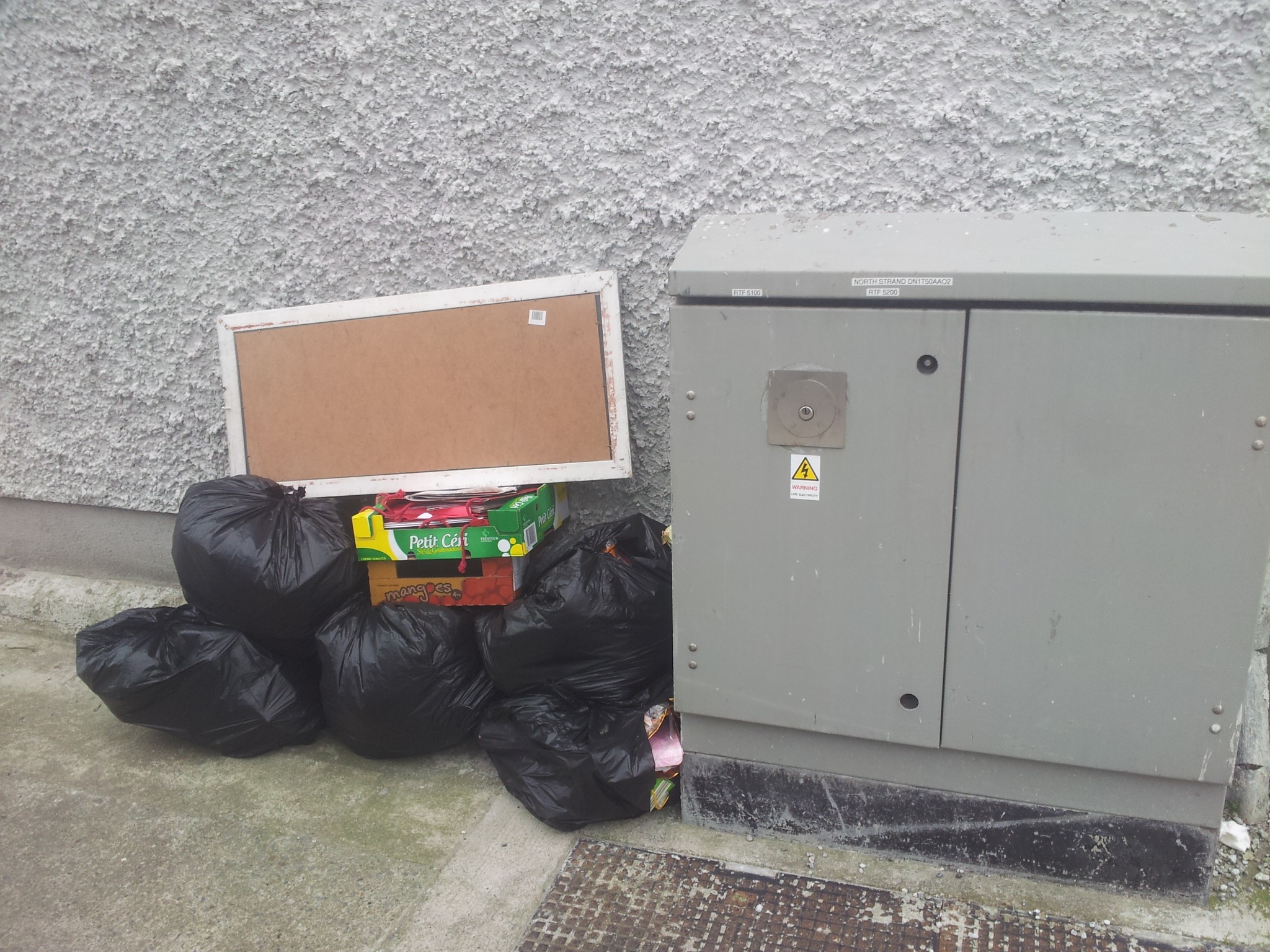 With thx to DF, who says “Top of st brigid’s avenue north strand. Bags at the top of the street every week! These are here since thursday”
