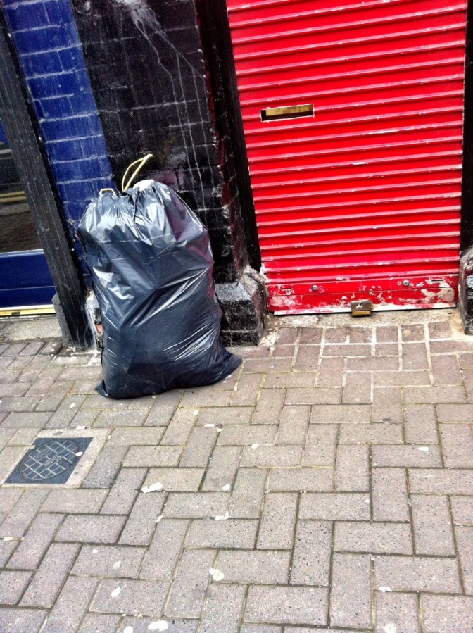 love that couch cushion in the bin bag! -> Capel St Selection. May 17 2013