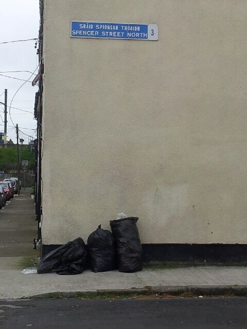Domestic bags left out at the ‘collection point’ -> Spencer Street North, D3. May 20 2013