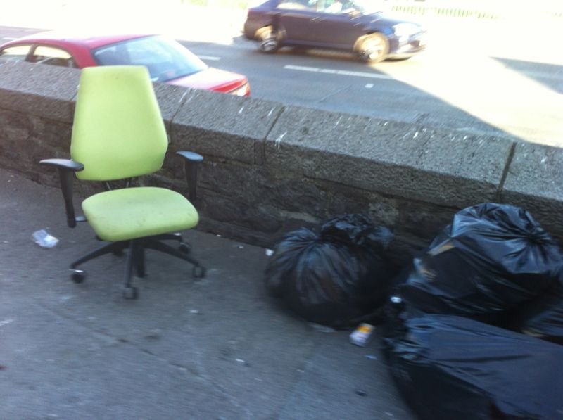 With thx to Seth M, who says “t is like this all the way down to Parnell Street junction, I just did not have the time to take all the photos – mad stuff. There’s an office chair included in one of the piles.”