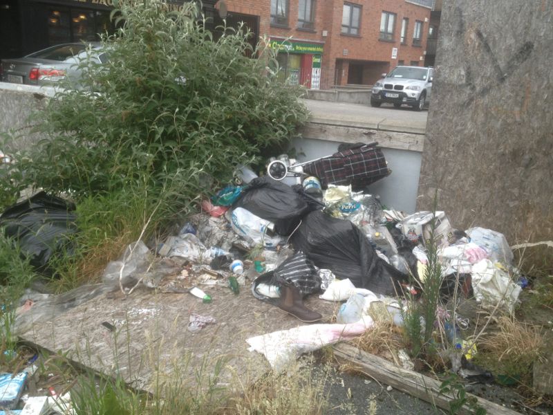 With thx to Kelly U, who says “Right beside The Laurence Lounge Pub. It was previously a Texaco garage but since it was knocked down a few years ago its now used as a dumping ground – disgraceful!!!”