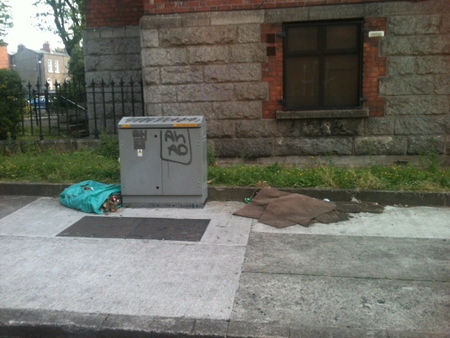 With thx to Cat H, who previousoly reported this dumping and who says “The rubbish bag and carpet are still there at the entrance to O’Devany Gardens from from NCR.”