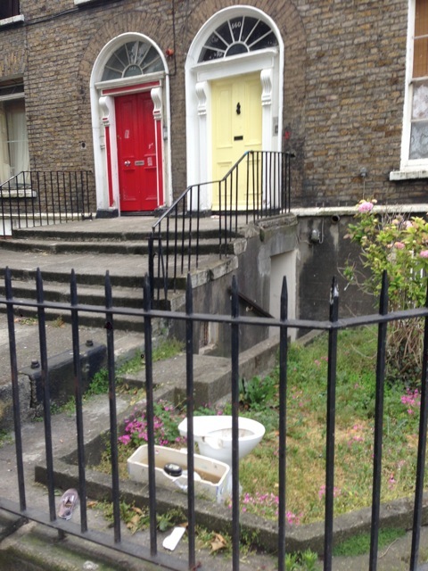 With thanks to GG, who says “560 NCR with the yellow door in the picture has had a toilet in the front garden for the past few months.”