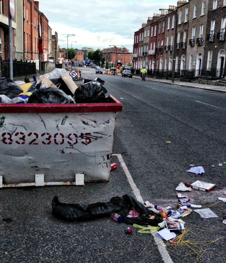 Skip overflowing w domestic waste -> 39 Belvedere Pl, D1. Aug 06 2013