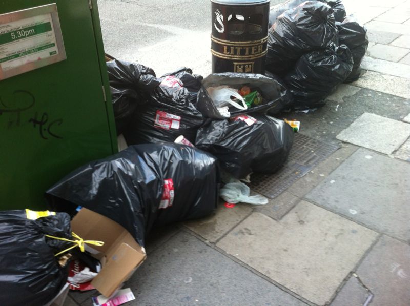 With thanks to SM who says ” Outside of post office and dublin supporters club. These bags are still there from last week, not as much as a rejection slip put on them, the path is barely passable.”