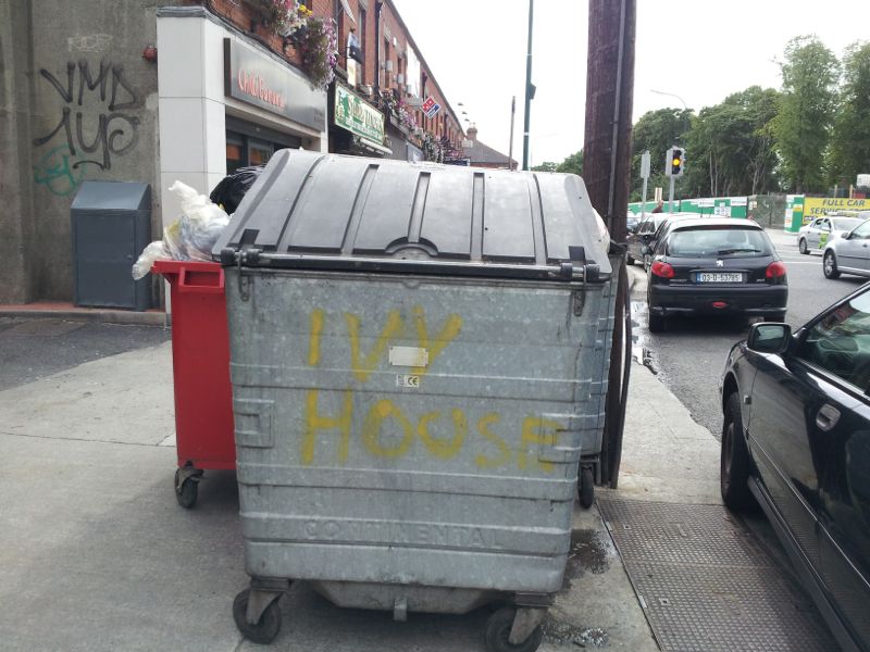 “Stench & Maggots running wild” -> Bins outside Ivy House Pub, Botanic Rd, D9. Aug 24 2013