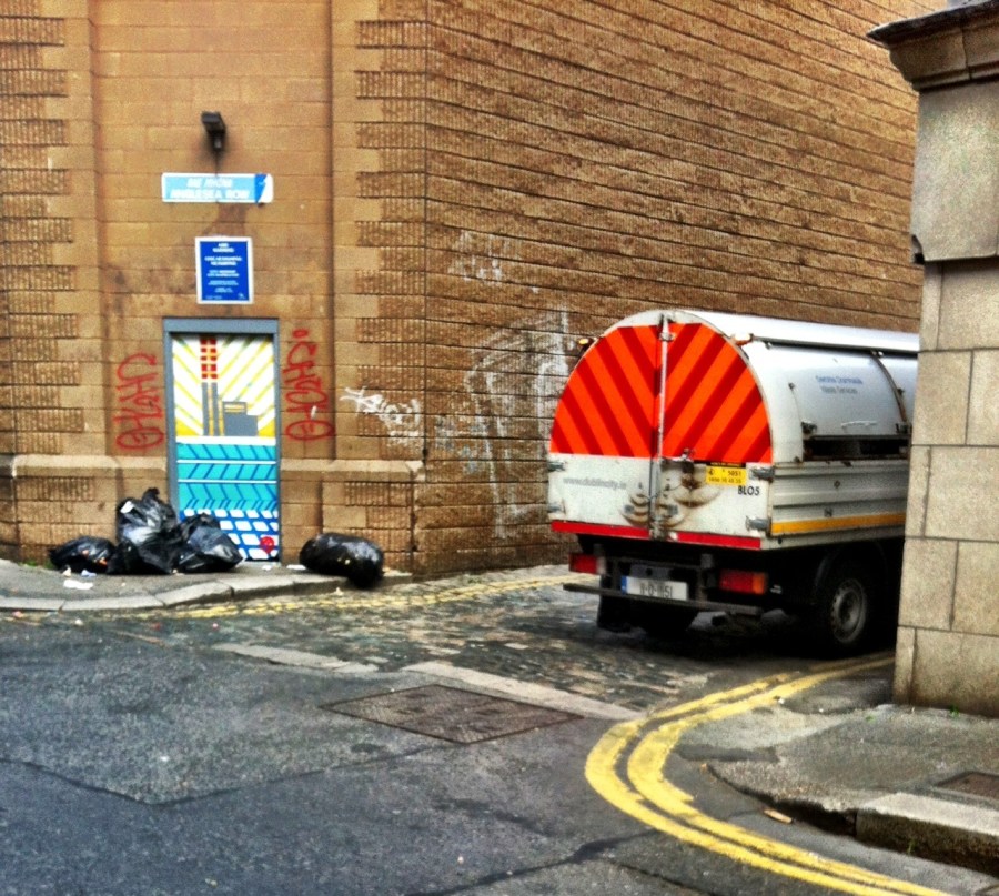 ← A nice new mural has appeared, unftly the dumping’s still there -> Anglesea Row, D7 . Sep 05 2013