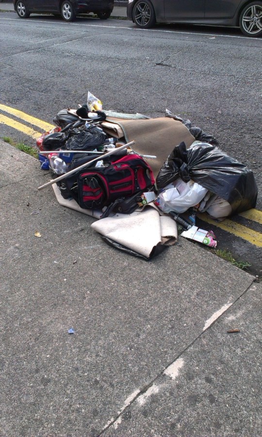 ← Wow this pile’s got everything. Carpet, binbags, sports bag… -> Killarney parade, D7. Sep 18 2013