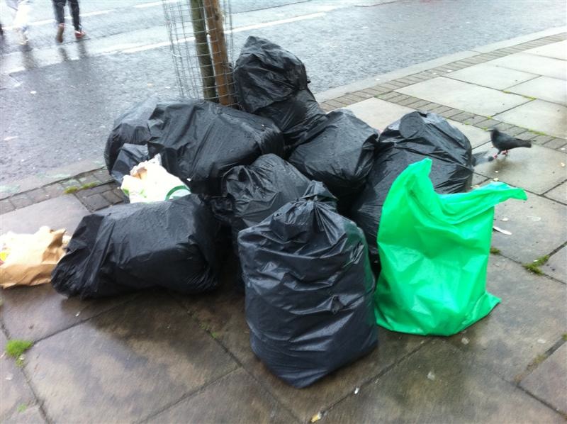 10 or 11 bags, & this is quite normal -> Rutland St & Summerhill jct, D1. Oct 02 2013