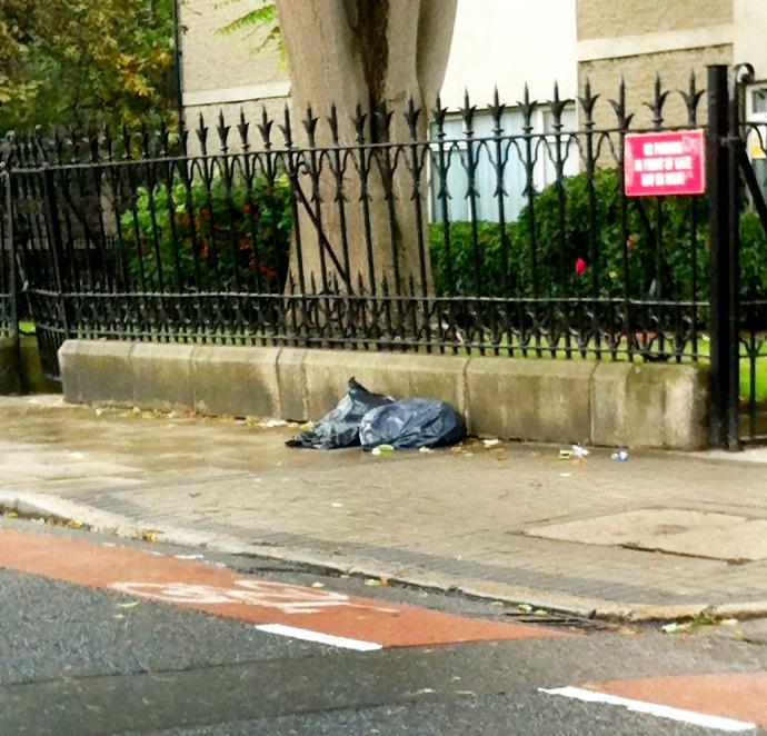 Bags dumped in front of the church ground railings -> Berkeley Rd, D7. Oct 01 2013