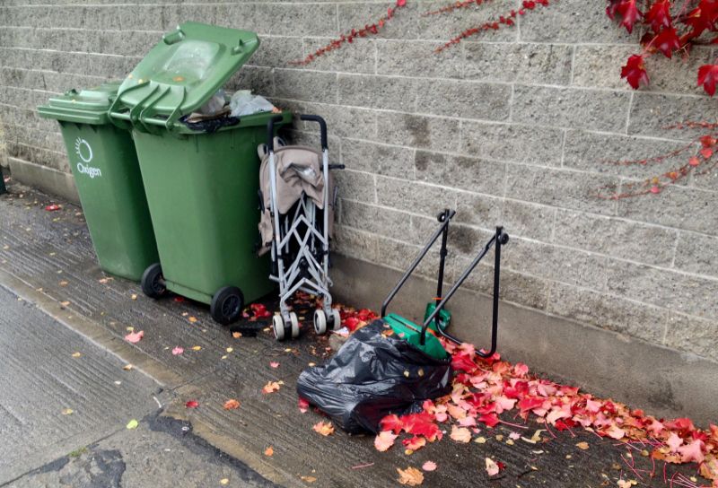 ← Lawnmower& pram.Submitter: “constant dumping spot in vulnerable unattended bins” -> Charleville Close, D6. Oct 03 2013