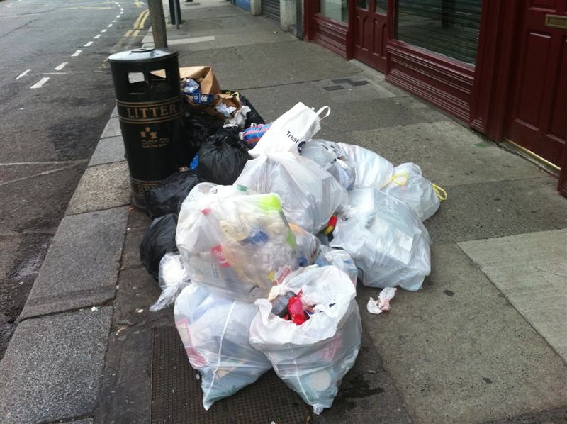 ← “20 bags in that 1st pile alone. Path blocked for wheelchair or pram access” -> 4 from Parnell St, D1. Oct 07 2013