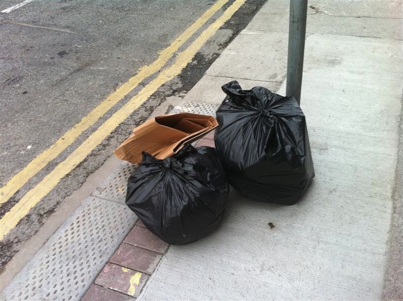 ← “20 bags in that 1st pile alone. Path blocked for wheelchair or pram access” -> 4 from Parnell St, D1. Oct 07 2013
