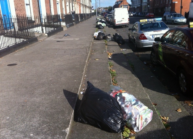 With thanks to SM, who says “Here is a sample from Summerhill Parade taken today. There must be 50 bags+ here. The dumping is indiscriminate and it is from the adjacent houses, it is an easily observed fact. It is done because it is allowed to be done, this is the cold stark reality of the situation and the people that are sick of it are passed off as anuisance and ignored, it’s ridiculous.”