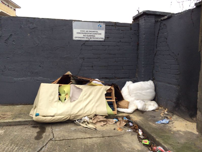 With thanks to SD, who says “Some fly-tipping and some regular waste. You wouldn’t have one without the other. Corner of Donore Avenue and Darleys Terrace Dublin 8.”