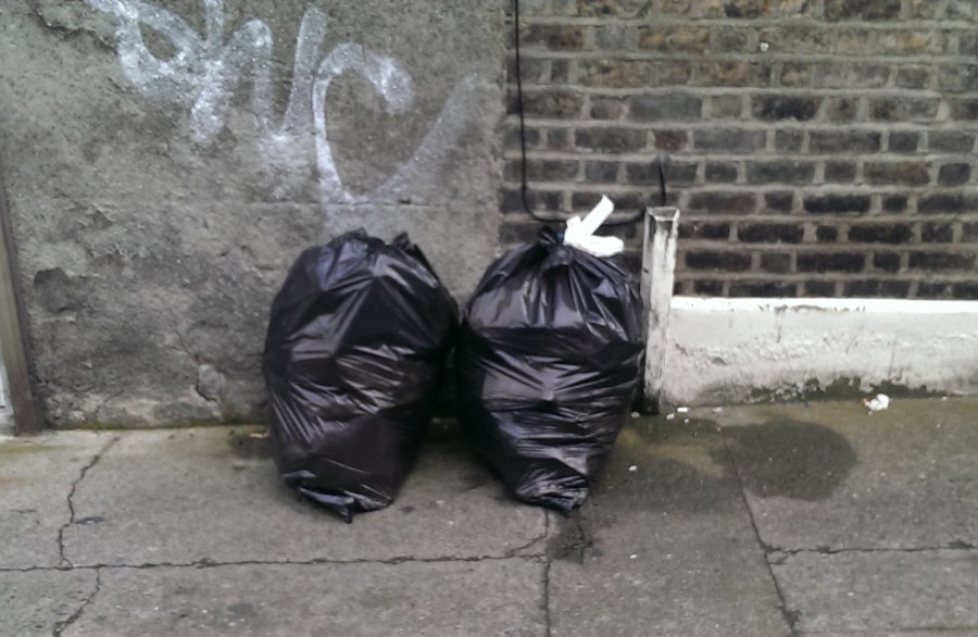 ← From a new submitter. Bags have been on his Rd for a few days now -> Richmond Row, Portobello D8. Nov 17 2013