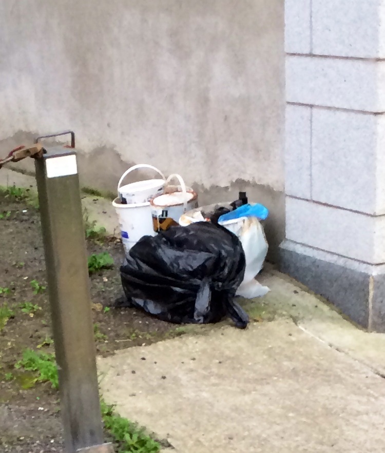 ← Tins of paint etc. Building is derelict& attracts much dumping -> Upper Dominic St, D7. Dec 02 2013