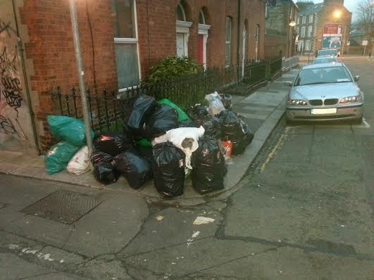 ← Footpath completely blocked with giant pile of rotting xmas waste. Hazardous -> Sherrard St Upr, D1. Jan 03 2014