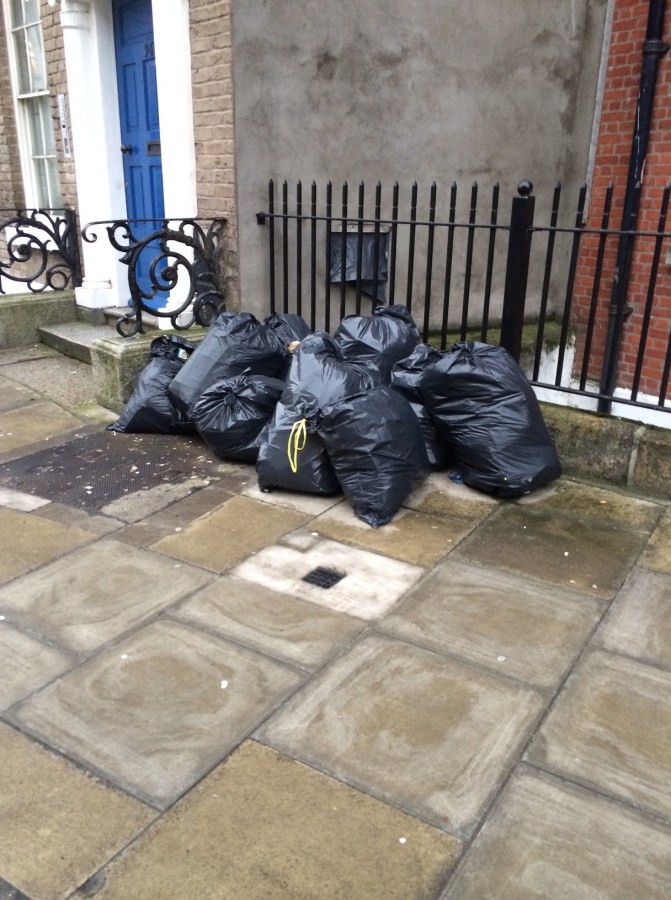 ← Popular dump spot this,likely coming from the nearby doorways -> Capel St, D7. Jan 30 2014
