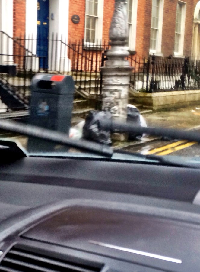 Binbags by the litter bin -> Eccles St, D1. Feb 03 2014
