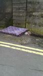 With thanks to LC and to RS. They say: “The matress is there since Friday 1st Feb. Incrediably a DCC ‘barrel’ litter van drives this route at least twice a day!!”