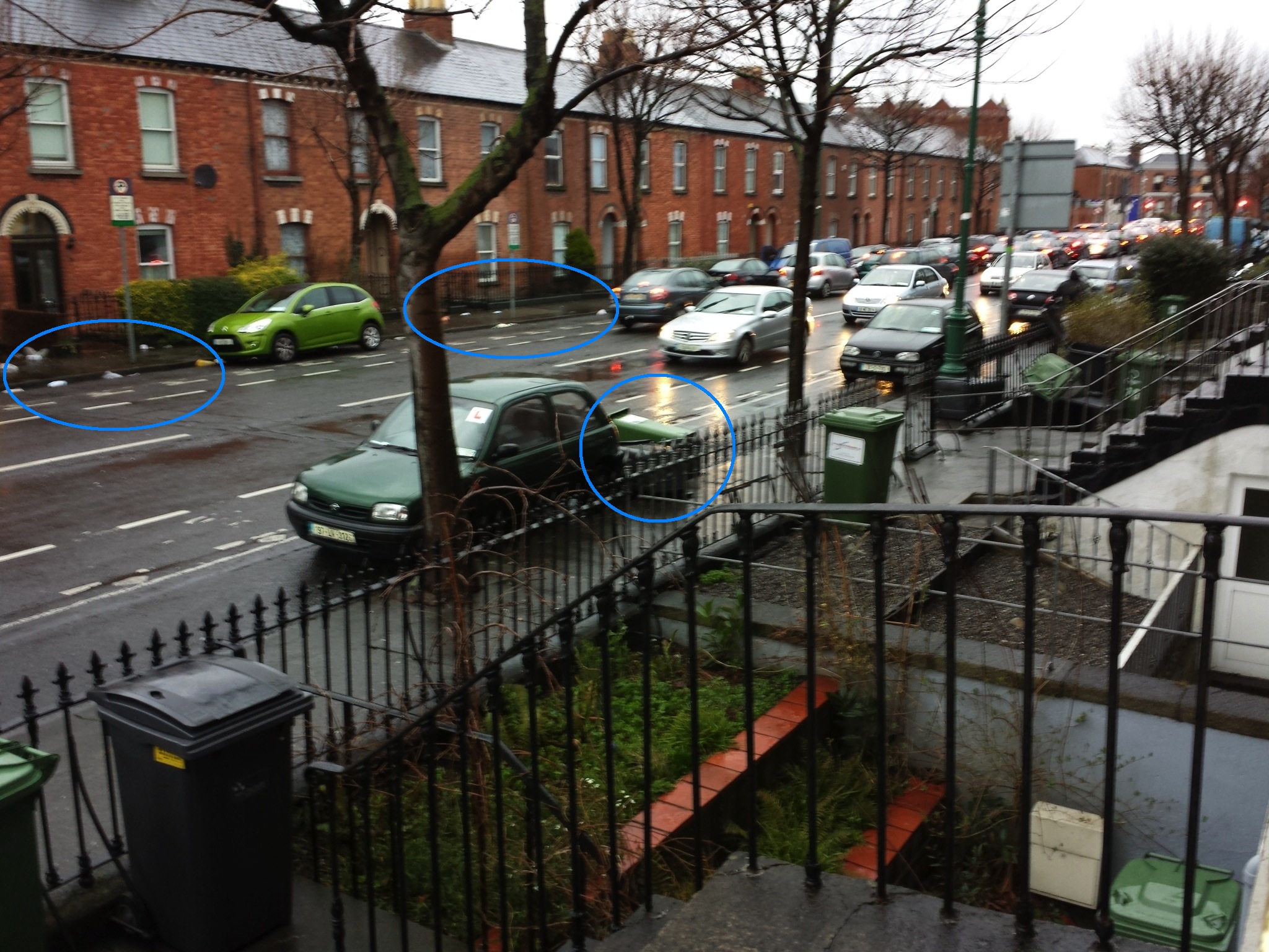 With thansk to BH. This is what happens when wheelybins are abandoned outside on the street with no enforcement. They attract lots of extra dumping, and then either get kicked over over (in this case) blown over by the strong winds. The upshot is rubbish getting strewn & spread over a wide area. Submitter says “As predicted from my last email, the Green wheelie bin from no. 21 has toppled over & a black food waste bag can be seen on the other side of the road, much of the rest of the contents as we speak are scattered up & down the road. The bloody infuriating part is the tenants were seen coming in and out all day. Their now empty black bin was picked up by a gust and blown into oncoming traffic. Another empty bin from next door can now be seen inside the garden of a house 50 metres away! Courtesy of aforementioned gust! It doesn’t help that, when Greyhound empty the bins they just toss them back at the kerb nowhere near the customers home.”