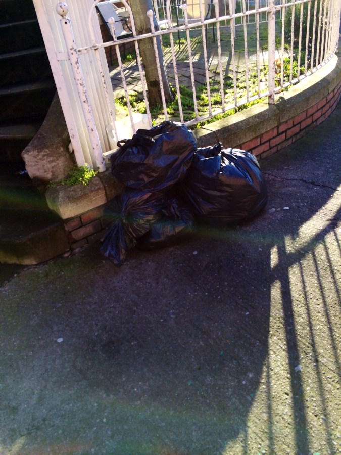 A few binbags for you – Ah cheers bud -> Golden Lane, D2. Feb 24 2014