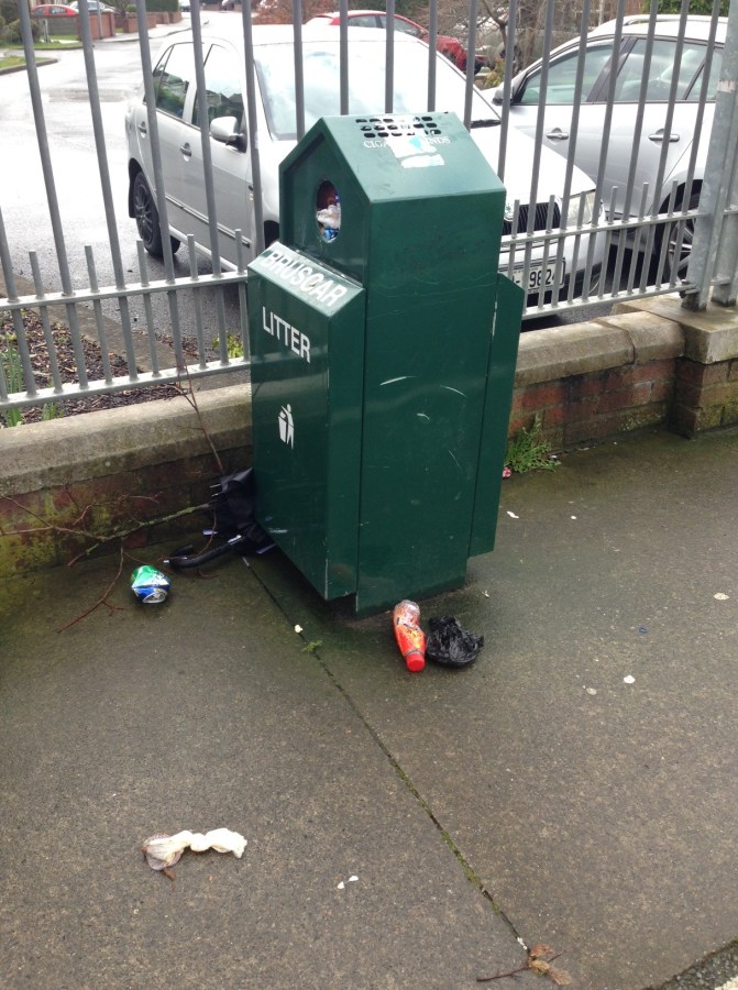Overflowing bin -> Griffeen Ave at Rossberry gate, Lucan D22. Mar 27 2014