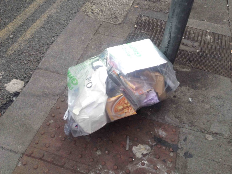 ← 4 pics showing more of the daily state of this stretch. Again note the uncollected bag -> Parnell St, D1. Apr 10 2014