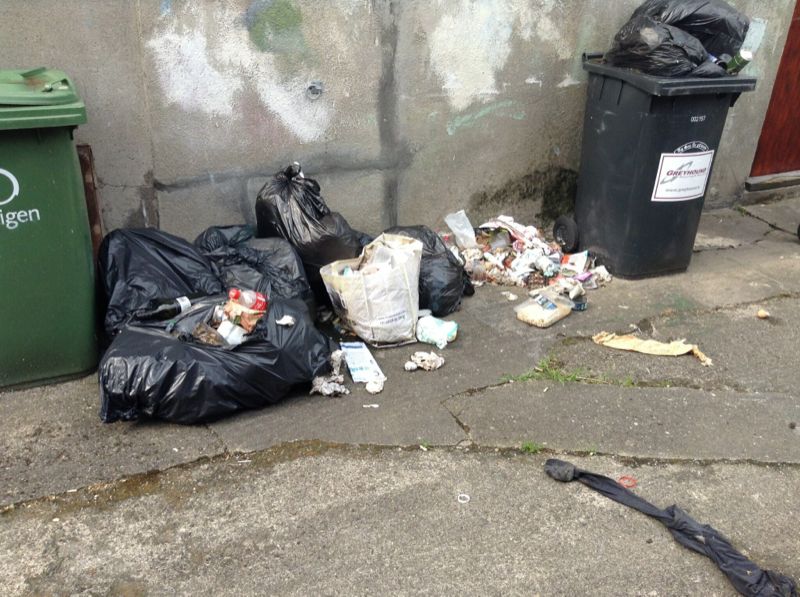 With thanks to @leeirenedillon, who says “Looks familiar, one wk later. Same rubbish, just more torn up & over-flowing on Rugby Villas, Ranelagh rear laneway.”