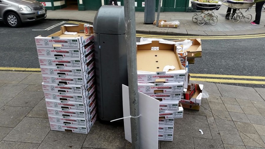← A business is not allowed to dispose of its commercial waste by just leaving it beside a bin! -> Mary St, D1. May 20 2014