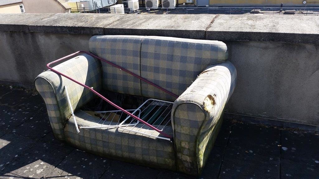 ← Creative waste ‘disposal’ .. lash it up onto the roof /cc @lorcanoc -> Mary St Rooftop, D1. Jun 20 2014