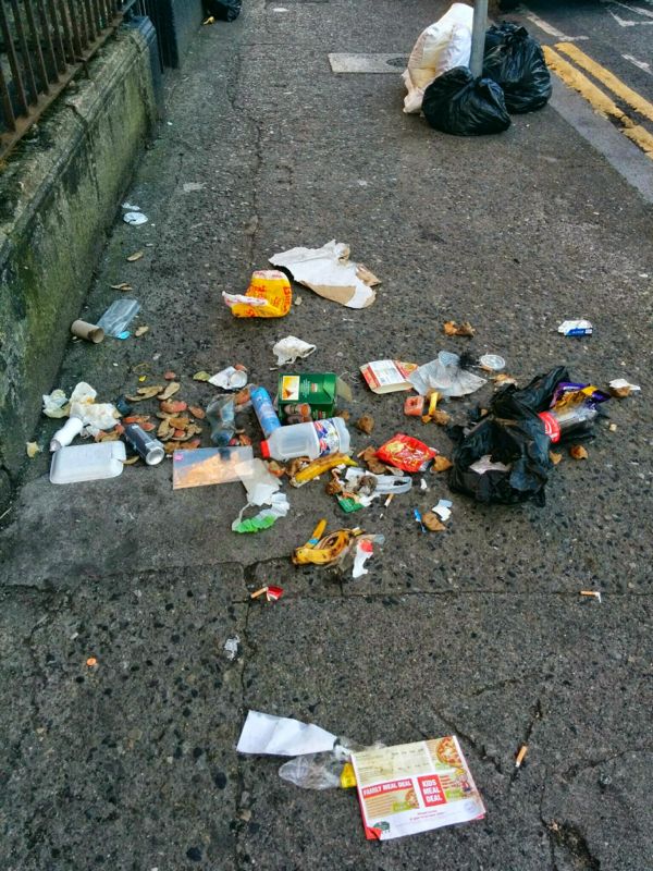 ← Disgusting & a hazard underfoot. Looks like bags ripped open deliberately -> Gardiner Place, D1. Jul 09 2014