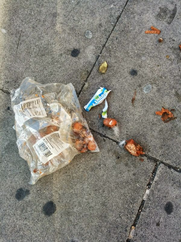 ← Disgusting & a hazard underfoot. Looks like bags ripped open deliberately -> Gardiner Place, D1. Jul 09 2014