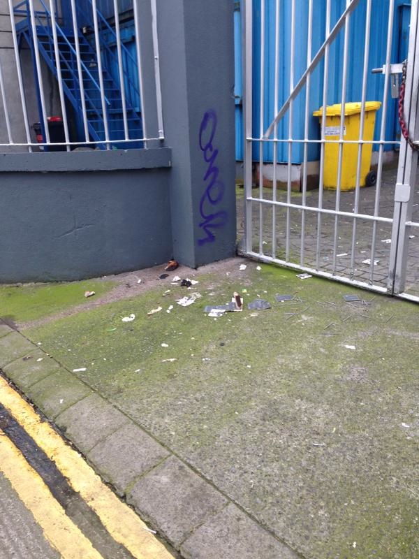 ← Hazardous litter – syringes etc.Why can’t anything ever be done? -> Schoolhouse Lane West, D8. May 10 2015