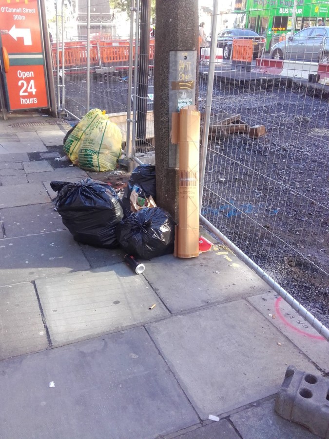 ← 3yds from OConnell St.Bags have burst+are strewing the contents around -> Parnell St, D1. Sep 23 2016