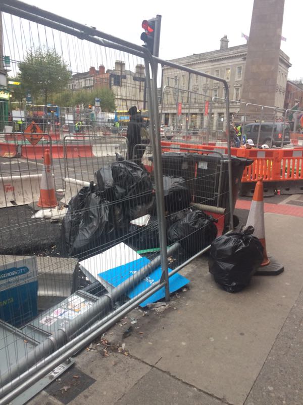 They’re now dumping INSIDE the LUAS works fencing -amazing -> O’Connell St, D1. Nov 28 2016