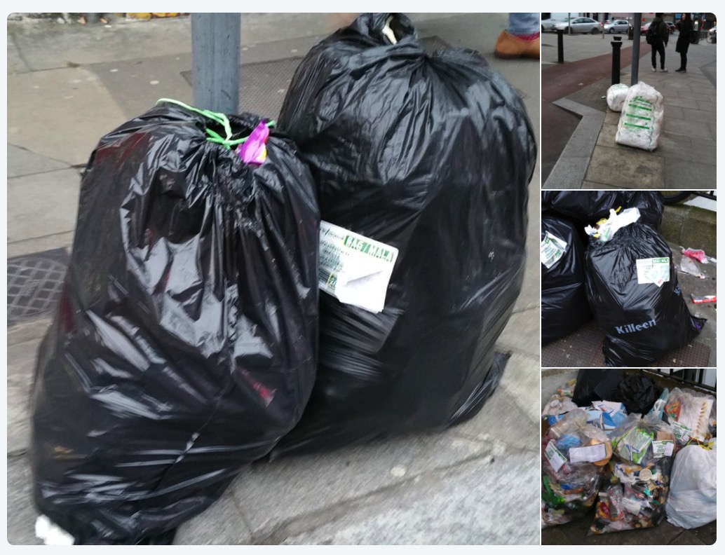 With thanks to @johnnypnorton, who says “@KeyWaste1. Some more piles of tagged @GreyhoundHH bags on Capel St this evening. Many here for weeks already.”