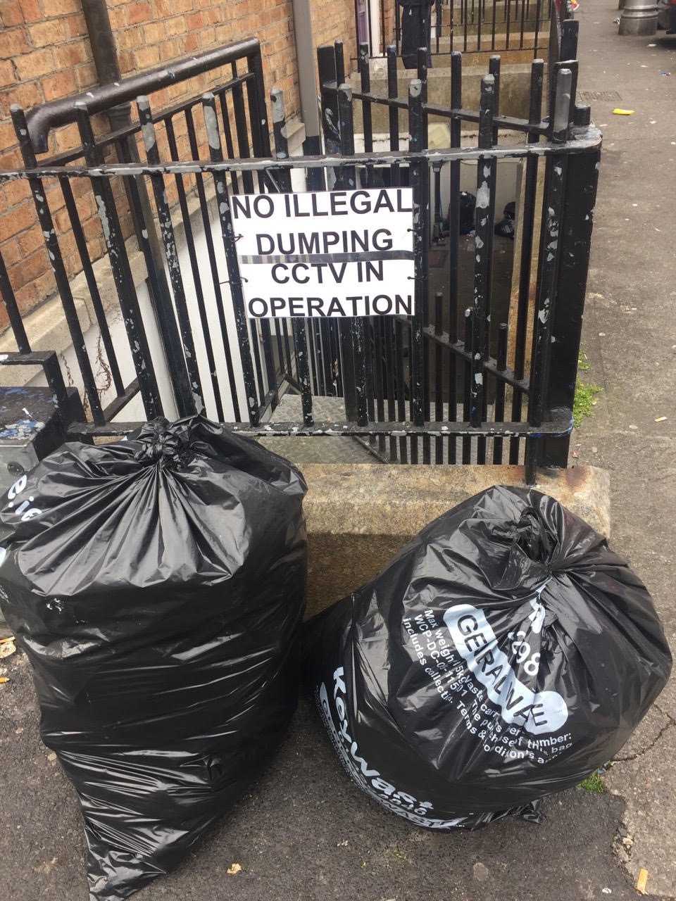 ← Even 1 or 2 blackbags cause a large amount of litter if left uncollected -> Geraldine St, D7. Apr 24 2017