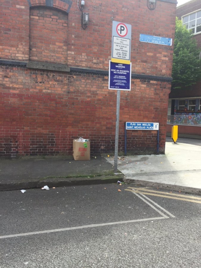 ← Nightly dumping spot.Tourist area btwn the 2 Cathedrals.Locals driven mad -> St Nicholas Pl, D8. May 08 2017