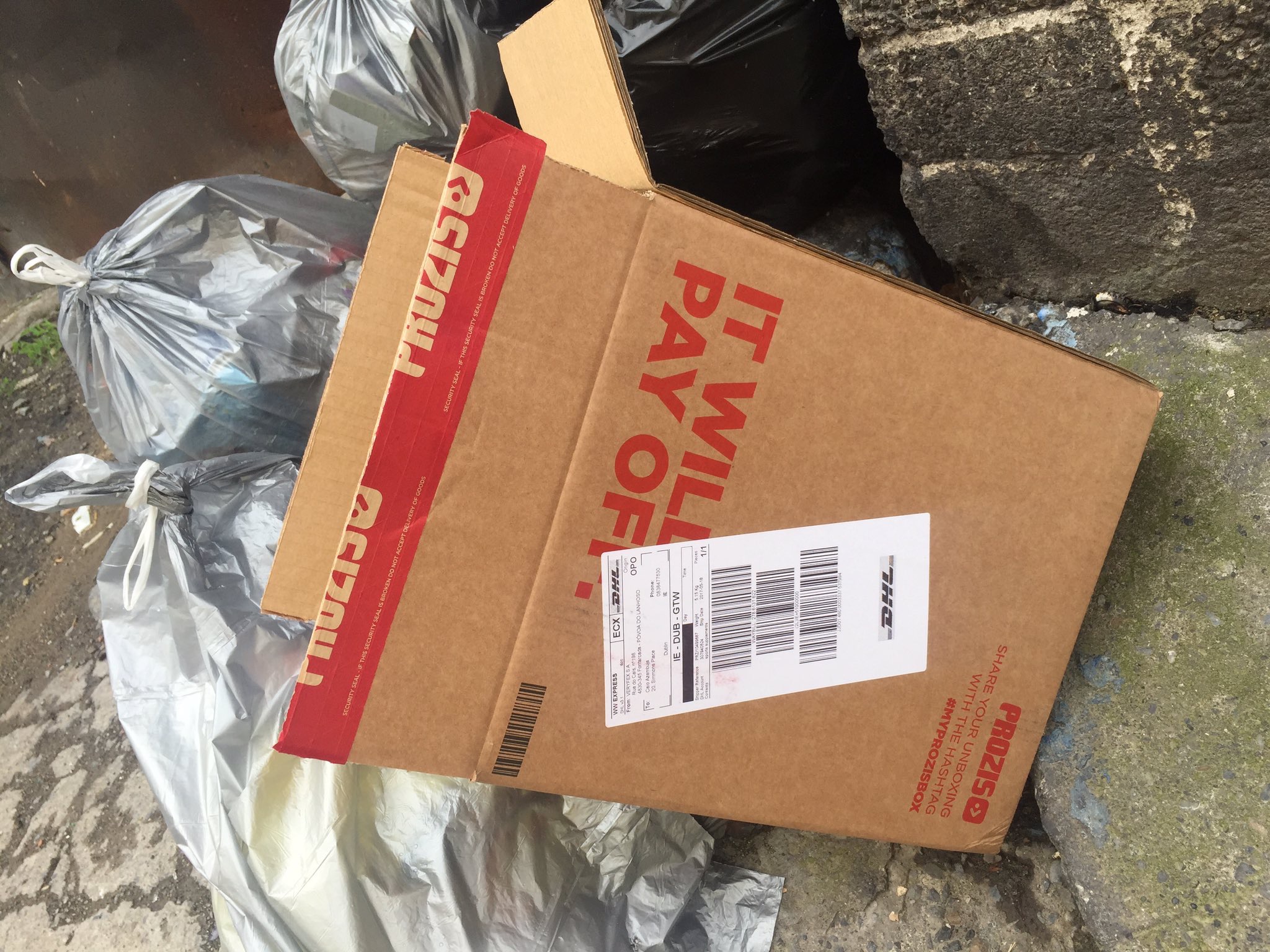 Address details visible on this dumped packaging, warden informed -> Near 20 Simmons Place, D1. May 23 2017