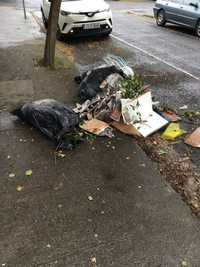 ← Garden waste,DIY waste,clothes rack..rogue landlord “clearout” perhaps -> Edenvale Rd, D6. Sep 28 2017