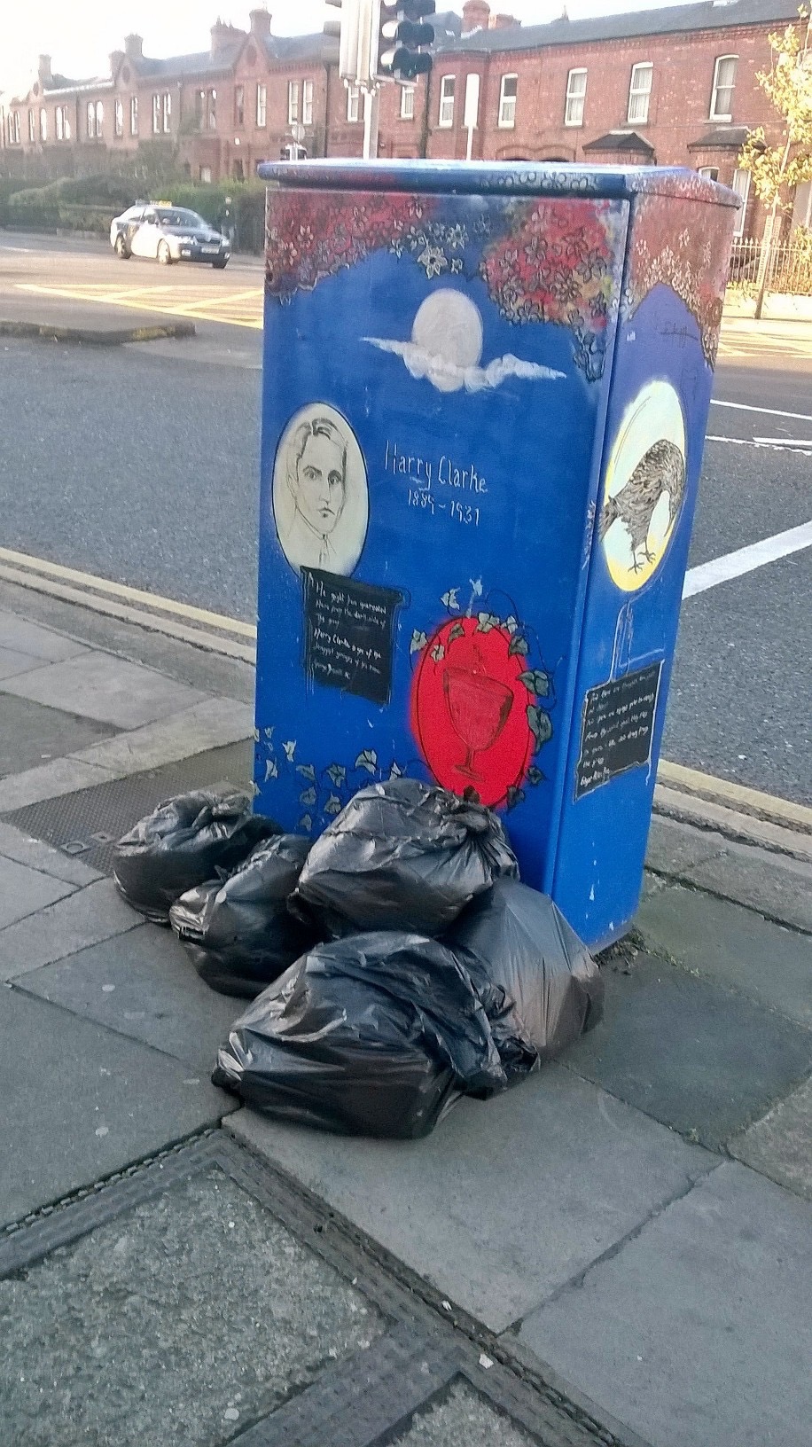 The good (street art) & the bad (street dumping) in 1 pic -> St Peter’s Church, Phibsboro D7. Nov 12 2017